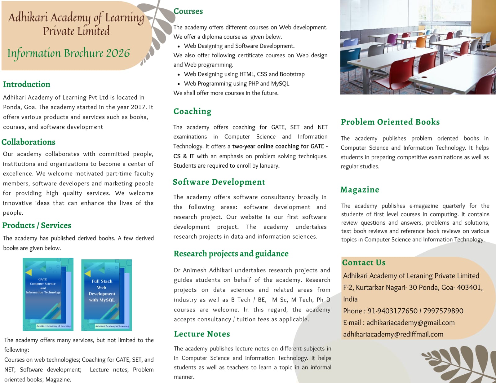 We offer coaching services for competitive examination such as GATE, NET and SET in Computer Science / Engineering / Applications. It becomes a great help for the students who aspire to reach at higher positions.